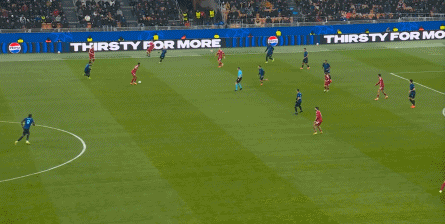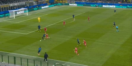 齐沃在场边可能也看出了一些问题,加上先后因伤连换两人,势必影响到了下半场替补调整的计划之后,国际米兰的思路可能是在上半场末段尽力打出一些内容,所以在半场结束前,国际米兰的节奏大大加快,进攻手段也变得简单许多,所以形成了一些威胁: